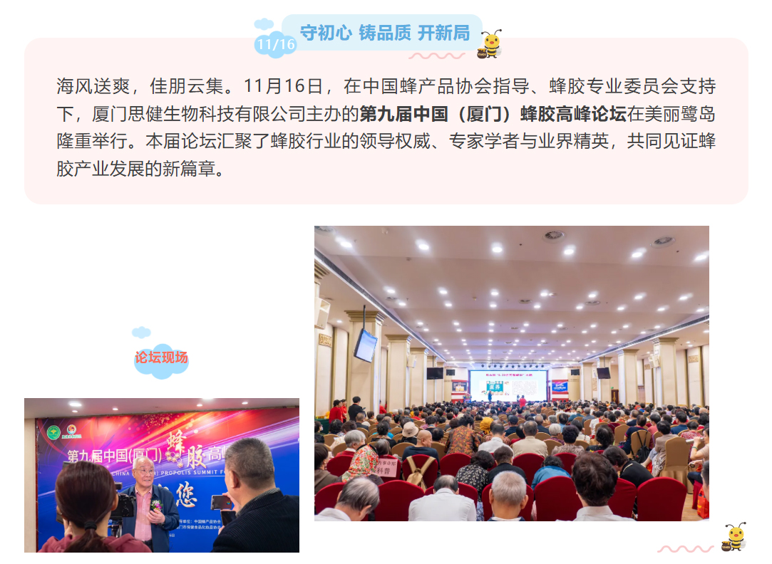 思健生物科技誠邀您共赴廈門(mén)出席第九屆中國(廈門(mén))蜂膠高峰論壇:與蜂業(yè)權威面對面,洞見(jiàn)蜂膠國際新未來(lái)